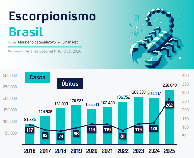 Esses dados evidenciam uma tendência consistente de crescimento dos acidentes escorpiônicos no Brasil,