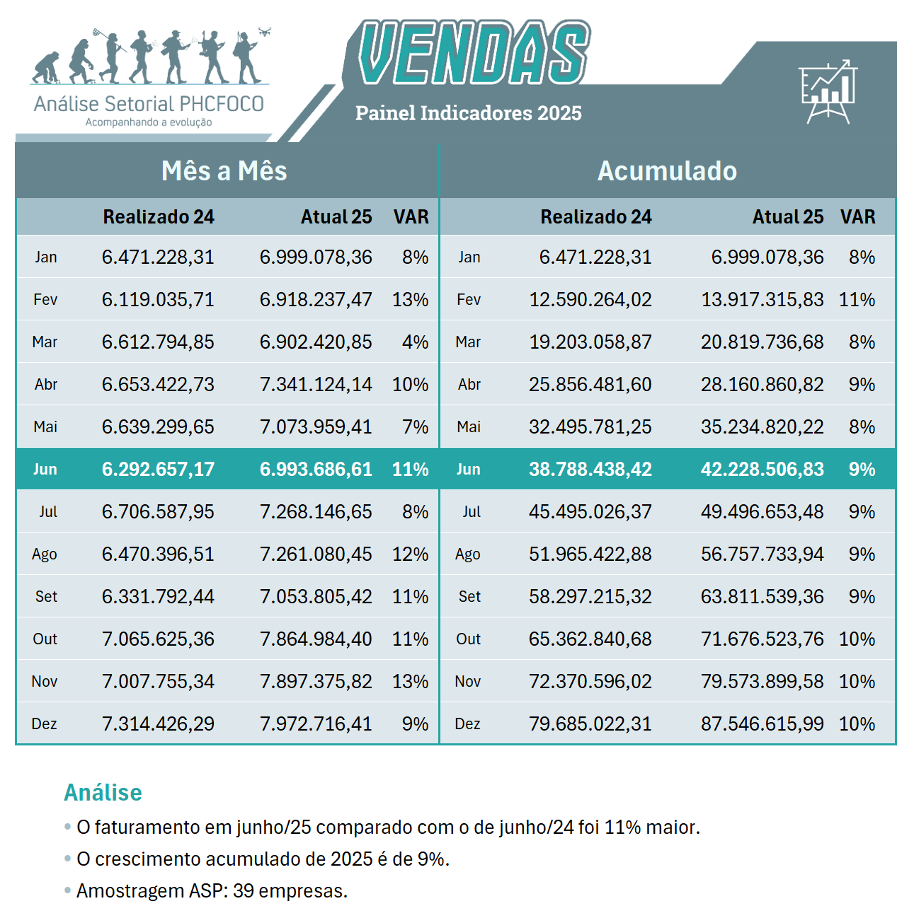 Real 24 x Atual 25, Situação / Empresa / Vendas (Faturamento)